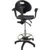 Tabouret ergonomique robuste avec accoudoirs réglables, Stationnaire, Ajustable, 39" - 48", Polyuréthane Siège, Noir